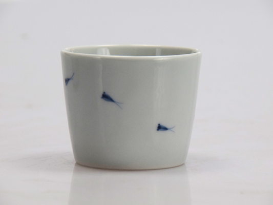 内白外染付メダカ 蕎麦猪口(渦)